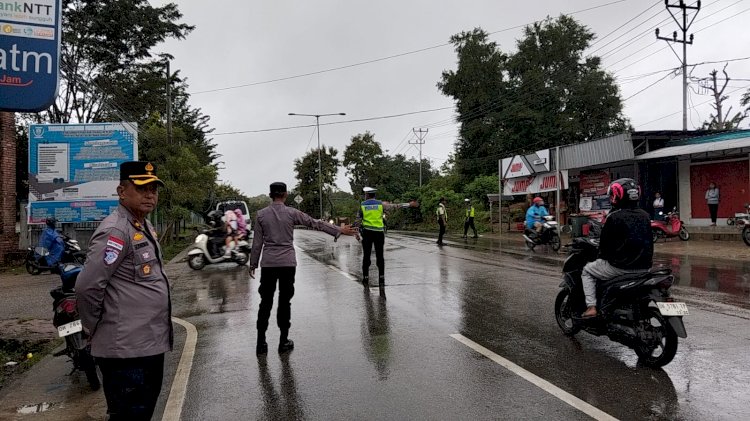 Hujan Tak Surutkan Semangat, Wakapolres TTU Kompol Sudirman, S.Sos., Turun Langsung Pastikan kegiatan Strong Point Pagi berjalan lancar